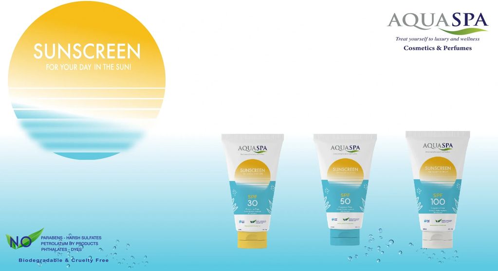 Aqua Spa Sunscreen helps protect the skin from sun exposure while keeping it moisturized and comfortable.